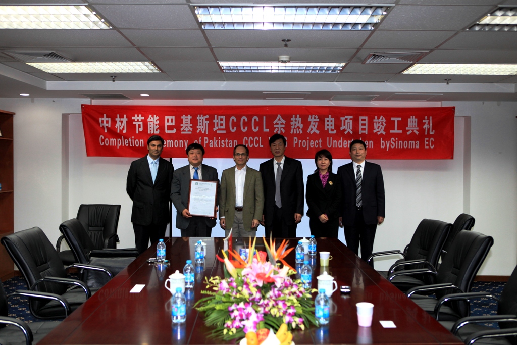 On April 20, 2010, Mr. Zhang Qi, Chairman of Sinoma Energy Conservation Ltd., on behalf of the company, took over the Factory Acceptance Certificate (FAC) for waste heat power plant project of Cherat Cement Co., Ltd. from Mr. Azam, CEO of Cherat Cement Co., Ltd. in Pakistan.
