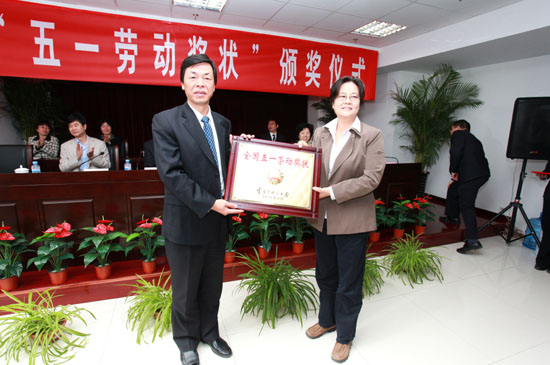 April 28, 2011, Sinoma Energy conversation Ltd. won National Labor awards, the award ceremony held in Tianjin. Ms. Liu Haihua , the chairman of Chinese machinery and metallurgy building materials union , of National Federation of labor Unions, and Mr. Li Baokun, Xue hui , the leaders of Beichen district, together with Mr. Yu Shiliang and Ms. Zhang Jiang , the leaders of Sinoma group, and President Zhang Qi of Sinoma-EC attended the ceremony, the ceremony presided over by Mr. Zhang Jiang.